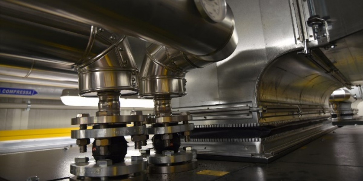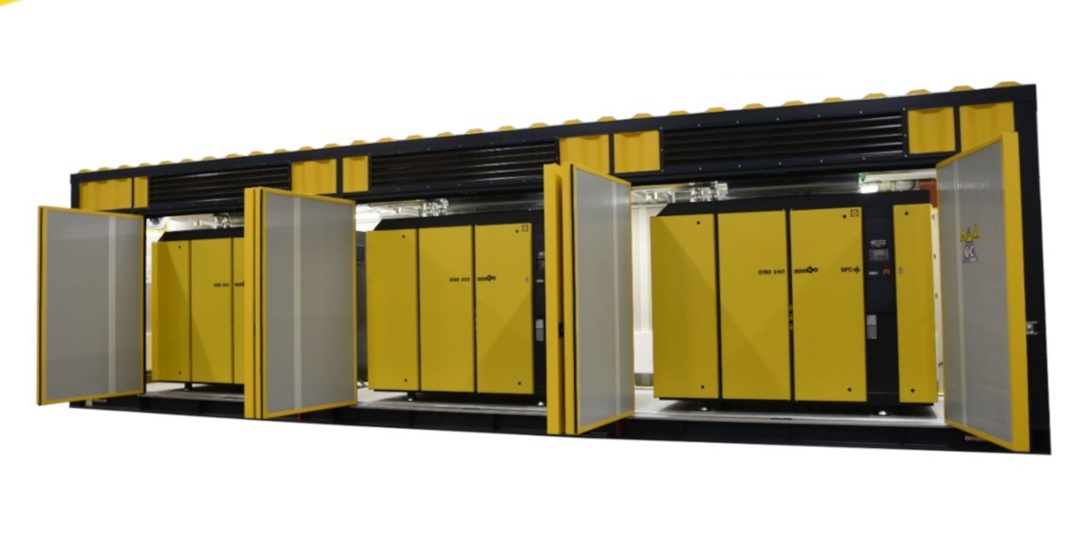 Die Anlage überzeugt mit Design und Energieeinsparung: Die Rückgewinnung der Kompressionswärme durch den Einsatz spezieller hydraulischer Leitungen ermöglicht die Rückgewinnung der Abwärme, die sonst nicht nutzbar wäre, zum Beispiel indem schon vorhandene stationäre Generatoren für die Brauchwarmwasserbereitung eingebunden werden.