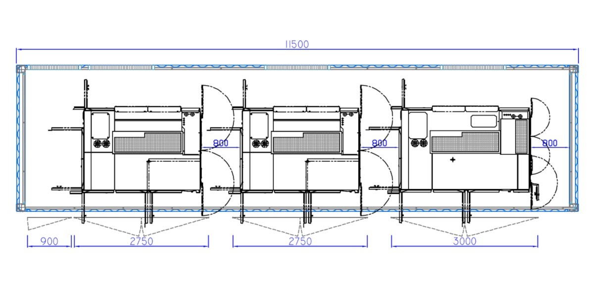 - Struktur: einteilig in Containerbauweise, mit genormten, elektrogeschweißten UNP-Profilen und ggf. mit entsprechenden Verstärkungen.